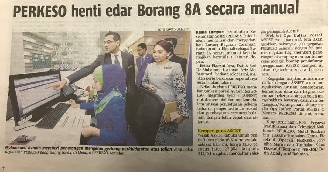 Anda boleh dapatkan borang 8a borang acr ecr dan resit bayaran. Posted in disember 2017 sumber. Sejak assist dibuka untuk pendaftaran pada 16 november lalu setakat hari ini hanya 12 96 peratus iaitu 27 984 daripada 215 981 majikan mendaftar sebagai pengguna assist. Alamat majikan employer address untuk kegunaan perkeso for socso use a1.