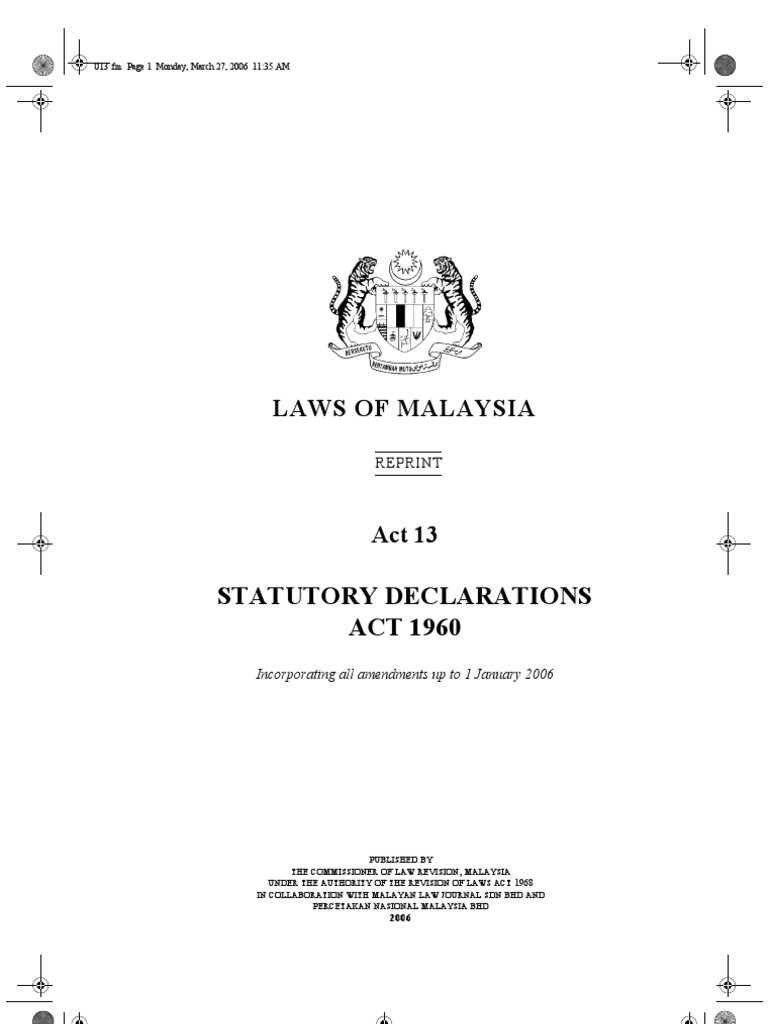 Saya diberi kuasa untuk mewakili pihak organisasi bagi mengemukakan borang yang ditentukan secara elektronik given the authority to represent the organisation. Serta menurut akta akuan berkanun 1960. Act 13 statutory declarations act 1960 an act to provide for the making and taking of statutory declarations and for purposes connected with it and incidental to it. 488 1968 short title 1.