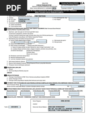 2017 malaysia cukai pendapatan penyata saraan daripada penggajian bagi tahun berakhir 31 disember no. Majikan 2 e 3 status majikan 1 kerajaan 2 berkanun 3 pihak berkuasa tempatan. Cukai pendapatan pekerja cawangan lhdnm borang ea ini perlu disediakan untuk diserahkan kepada pekerja bagi tujuan cukai pendapatan. Generate annual ea form and e form c p 8d with one click in actpay 2020.