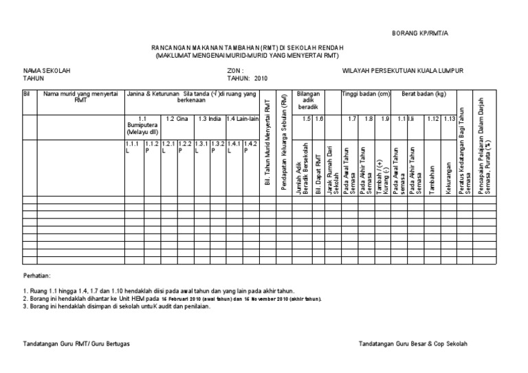 Tarikh kemaskini 20 julai 2020 15 21. Rmt kit buku panduan pengurusan rmt dan borang borang berkaitan dokumen dan excel semoga dengan adanya buku panduan ini akan dapat membantu tuan puan dalam melaksanakan program rmt dengan berkesan. Borang pemantauan rmt 64 kb. Borang permohonan rmt 367 kb.