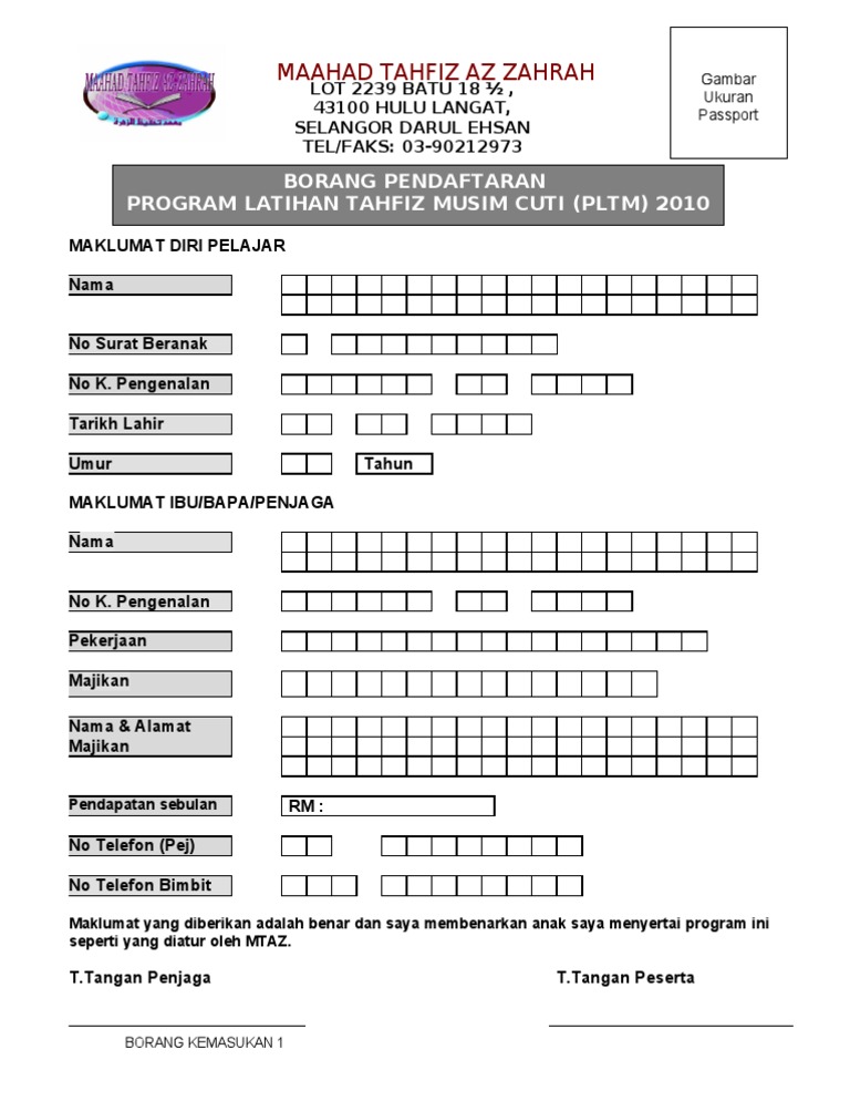 Maklumat hendaklah dilengkapkan dengan jelas dan menggunakan huruf besar.