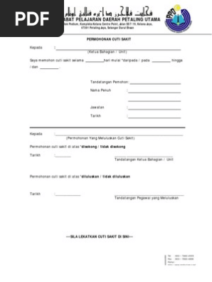 Cuti sakit disahkan sendiri unit faedah faedah perkhidmatan bahagian cuti bahagian perkhidmatan personel tingkat 5 simpang 156 jalan kumbang pasang bandar seri begawan ba 1311 negara brunei darussalam. Borang pelanjutan cuti belajar akademik. Pejabat kesihatan daerah gombak no 23 25 jalan 2 8 bandar baru selayang 68100 batu caves selangor darul ehsan tel. Borang permohonan kemudahan tambang belas ehsan.