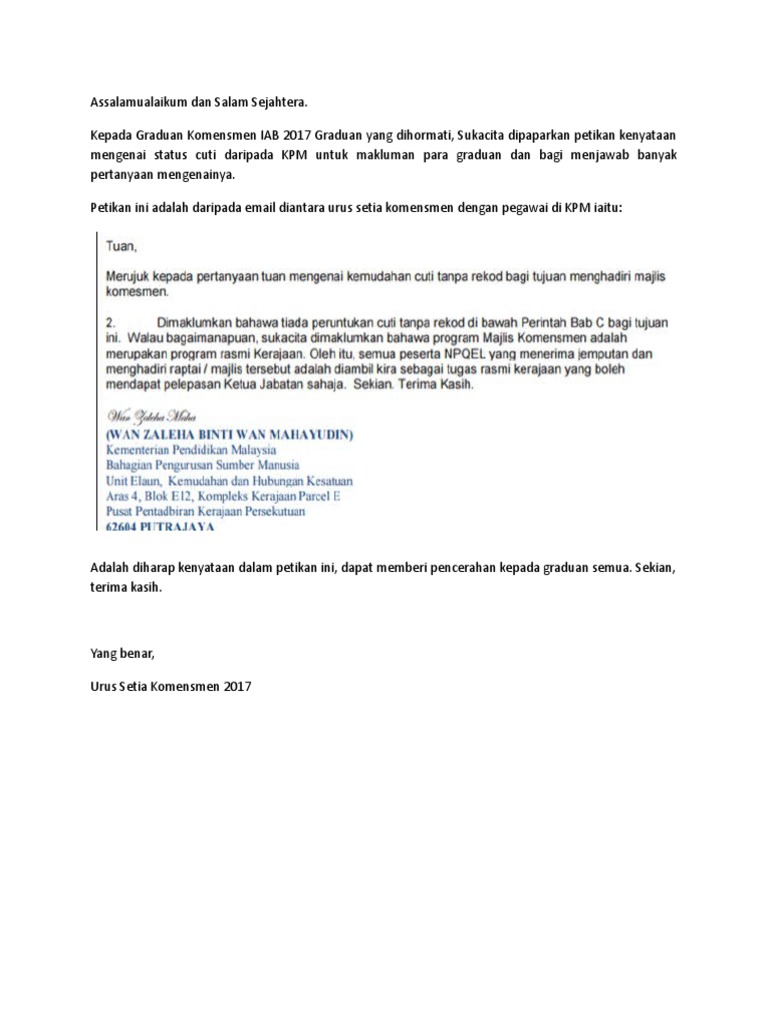 Pekeliling rasmi kemudahan cuti kuarantin ini boleh dibaca di sini. Hendaklah diisi dan ditandatangani ringkas sebelum borang diserahkan kepada pemohon. Pekeliling perkhidmatan permohonan cuti kuarantin 2017. Sehubungan itu saya memohon kemudahan cuti kuarantin selama hari pada mulai sehingga.
