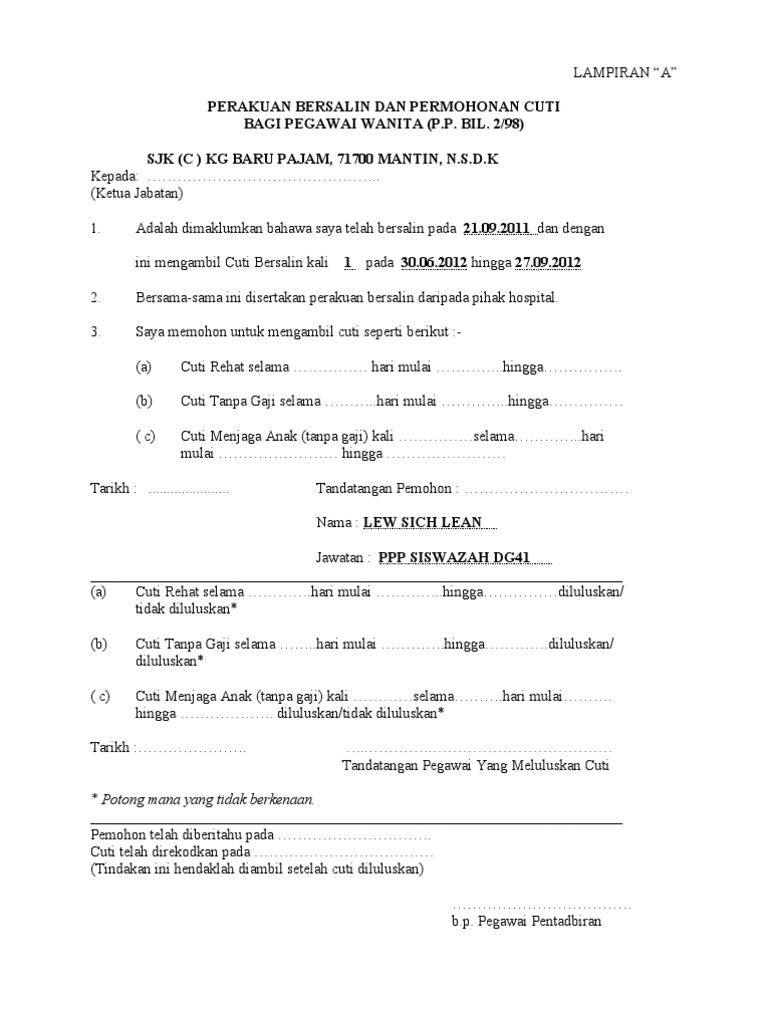 Borang cuti menjaga anak tanpa gaji. Anda cuba buat alasan untuk cuti kerja tanpa gaji atas alasan alasan yang difikirkan logi. Borang kemas kini januari 2017 1 permohonan kemudahan cuti menjaga anak cma pekeliling perkhidmatan bilangan 5 tahun 2014 arahan. Jika masih tidak mencukupi cuti bersalin tanpa gaji digunakan. Adakah cuti menjaga anak cuti bergaji atau sebaliknya.