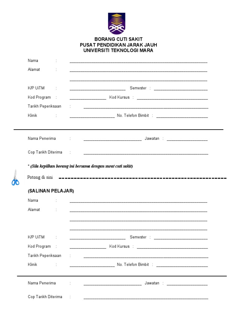 Borang cuti uitm. Pdf download. Kelayakan kemudahan cuti bersalin di bawah pekeliling perkhidmatan bilangan 14 tahun 2010 300 hari 180 hari 120 hari tolak kelayakan kemudahan cuti bersalin yang telah digunakan sehingga 31 ogos 2010 60 hari x 3 kali. Pdf download mileage perbatuan. Pdf download 4 borang sijil cuti sakit.