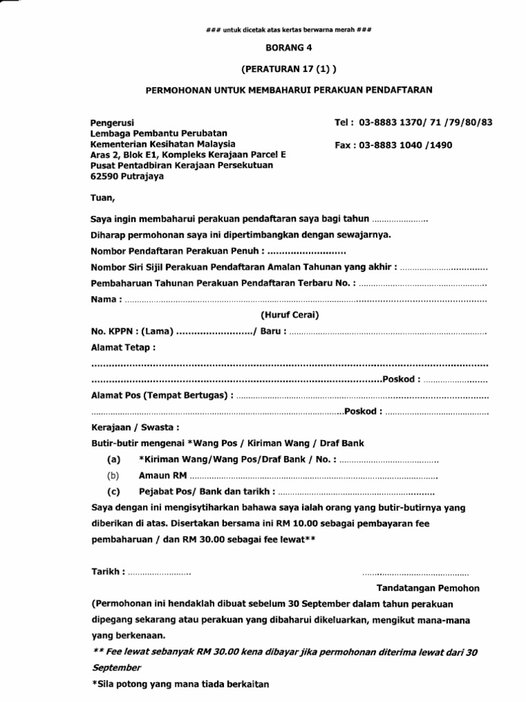 Maklumat terkini kaunselor berdaftar. Bagi permohonan pembaharuan yang lewat dibuat selepas 1 disember permohonan. Borang f subperaturan 7 1 akta juruanalisis makanan 2011 peraturan peraturan juruanalisis makanan 2013 pembaharuan perakuan amalan tahunan 1. Permohonan bagi perakuan amalan dwitahunan.