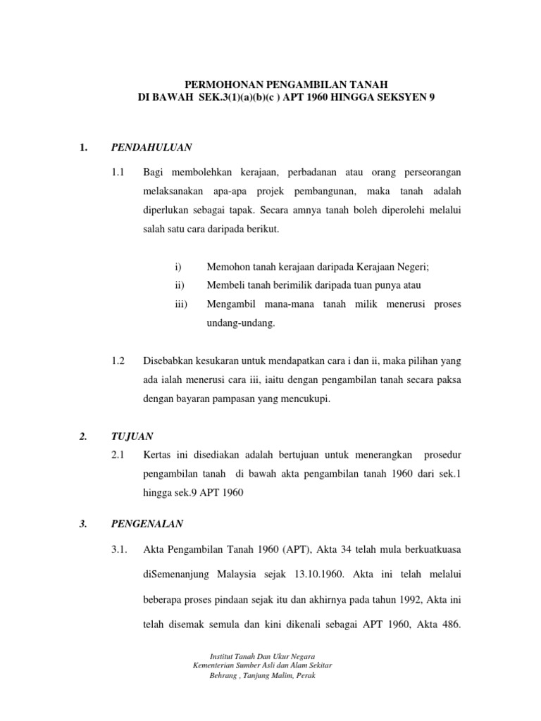 Pra pengambilan prosedur pengambilan tanah beberapa gerak kerja iaitu permohonan pemeriksaan dan pengwartaan tanah yang hendak diambil balik. Pemberitahu siasatan borang e administrator 10085 5 pengisytiharan pengambilan yang dicadangkan borang d administrator 10051 6 jadual tanah yang terkena oleh pengambilan borang c administrator 10317 7. Siasatan dan pembayaran pampasan pt hendaklah mengambil perhatian bahawa salinan borang e dan di mana perlu borang f hendaklah disampaikan juga kepada kementerian jabatan yang berkenaan. E salinan cukai tanah cukai taksiran terkini.