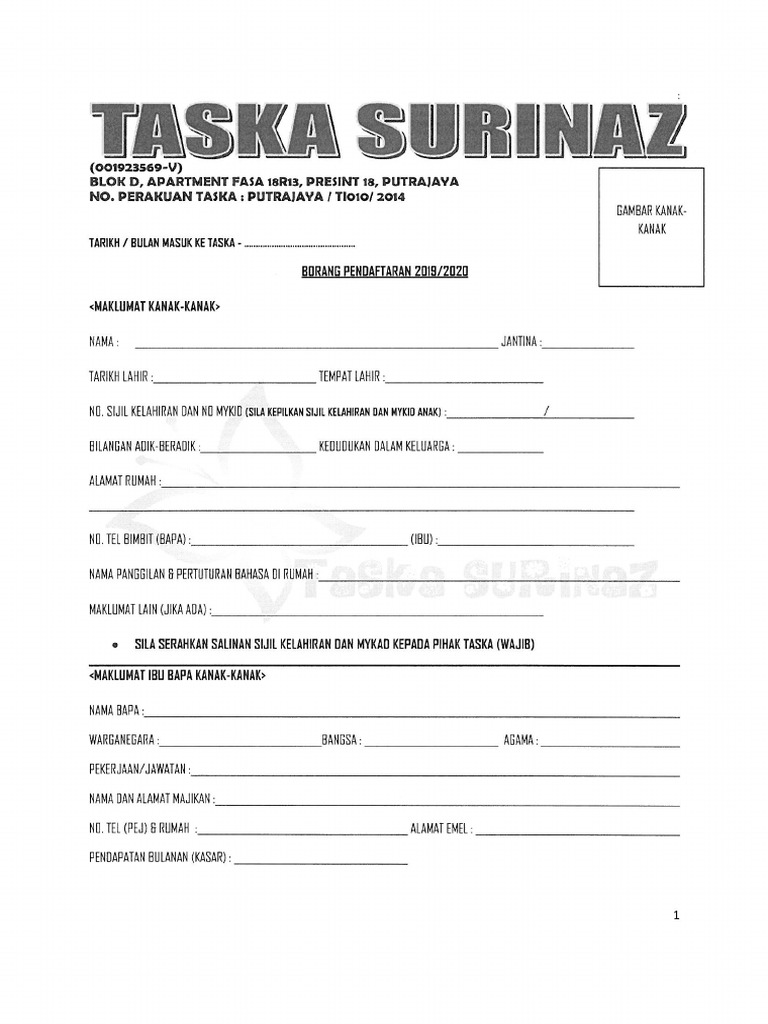 Borang f tadika. Butiran diri kanak kanak diisi oleh ibu bapa atau penjaga. Sila baca arahan sebelum mengisi borang bahagian a. 2 salinan cukai taksiran terbaru. Tak kesah sangat dengan silibus yang diajar janji anak saya boleh belajar membaca dan berkawan.