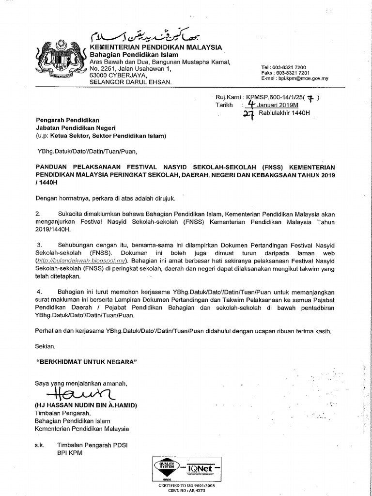 Panduan pelaksanaan festival nasyid sekolah sekolah fnss kpm 2019.