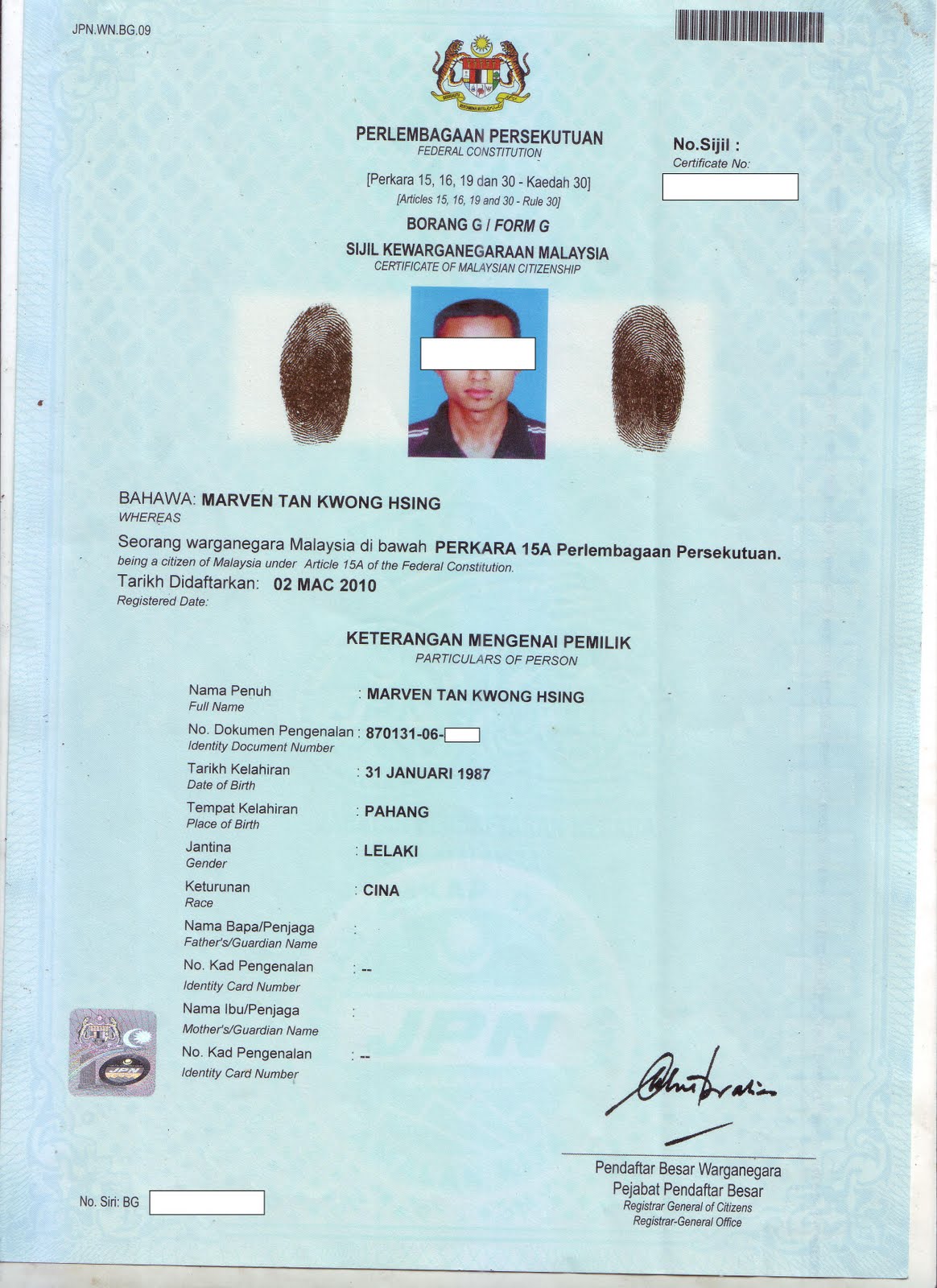 Borang g sijil kewarganegaraan. Gunakan alamat email yang aktif. Borang borang boleh didapatkan daripada ibu pejabat jpn putrajaya atau mana mana ibu pejabat jpn negeri cawangan. Hanya borang permohonan yang diisi dengan lengkap dan ditandatangani daripada pemohon. Permohonan taraf kewarganegaraan di bawah perkara 14 perlembagaan persekutuan pengesahan taraf kewarganegaraan kelahiran luar negara permohonan gantian sijil kewarganegaraan permohonan cabutan atau salinan diperakui sah dalam daftar kewarganegaraan.