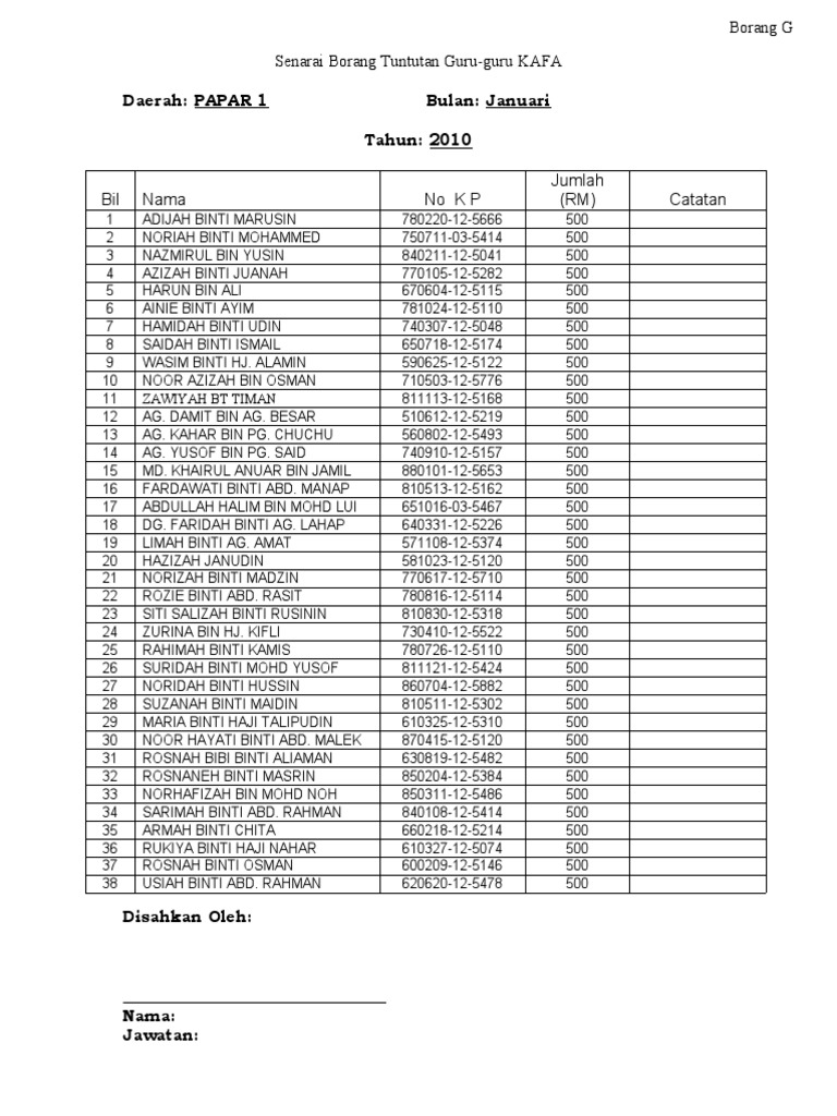 Borang g tuntutan elaun guru kafa. Jadual mngjr sem 2 2010. Borang semakan kursus dihadiri guru kafa. Borang g tuntutan elaun guru kafa kpm v1 2020. Tuntutan elaun kafa februari.