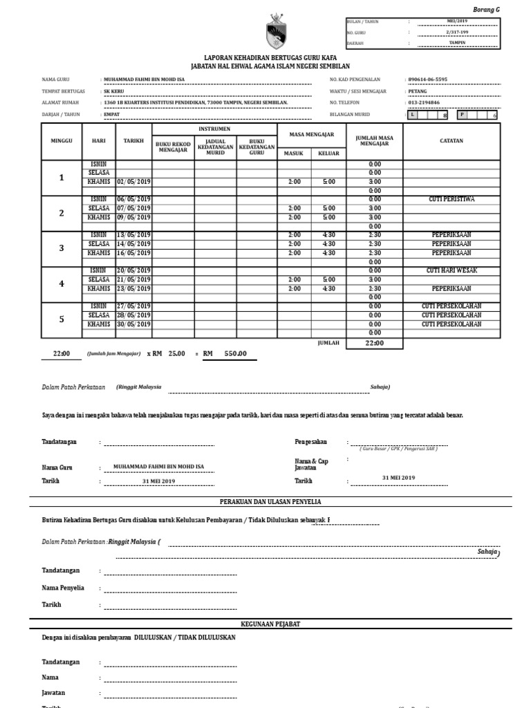 Borang c claim guru kafa semua guru. Manual instrumen pemantauan kafa. Lompat ke halaman. Borang g tuntutan elaun guru kafa tulen v5 2020.