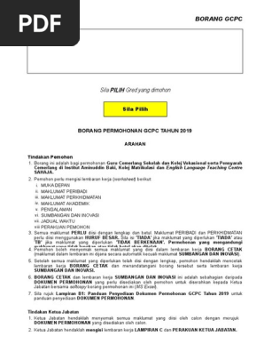 Lembaran kerja perakuan ketua jabatan yang telah diisi hendaklah dicetak dan ditandatangan seterusnya diimbas scan ke format pdf untuk diemel bersama borang permohonan ini ms excel kepada urus setia penilaian gcpc tahun 2019. Scribd is the world s largest social reading and publishing site. Jawatan sektor pekerjaan butir butir diri calon diisi dalam huruf besar butir butir diri pasangan calon jika berkaitan institusi bertugas sekarang kod institusi. Borang permohonan gcpc tahun 2020 8.