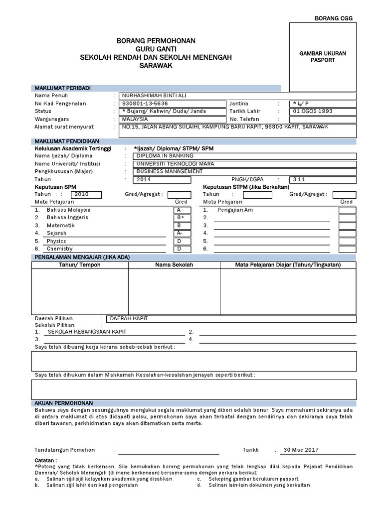 Borang guru ganti sarawak 2020. Permohonan adalah dibuka melalui pejabat pendidikan negeri setiap daerah mengikut kekosongan yang ada sepanjang tahun. Maklumat permohonan guru ganti. Tahun 2020 ini permohonan guru ganti boleh terus diajukan kepada pejabat pendidikan daerah di sekolah mana anda berminat untuk menjadi guru ganti. Borang permohonan oleh individu borang gg2019 c.