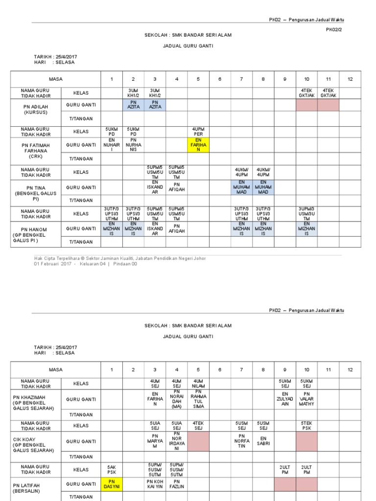 Memang memeningkan kepala nak sediakan jadual ganti ni apatah lagi sekiranya bilangan guru yang tidak ada di sekolah pada hari itu agak ramai. Sila pastikan baucar bayaran lengkap dengan dokumen dokumen berikut dan dihantar ke ppd pontian sebelum atau pada 5hb setiap bulan. B jadual waktu guru. Antara syarat syarat kelayakan guru ganti 2020 yang dipenuhi oleh pemohon adalah seperti.