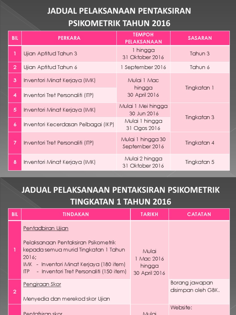 Hari ini saya akan berkongsi mengenai psikometrik inventori trait personaliti. Inventori personaliti warna dan self directed search. Pilihan jawapan pula boleh terdiri dari semudah 2 pilihan jawapan 3 pilihan jawapan 4 pilihan jawapan ataupun 5 pilihan jawapan. Analisa psikometrik ini boleh dirumuskan melalui sesi perjumpaan kaunseling dengan guru kaunseling secara bersemuka agar murid mengetahui hasil dari responnya tadi.