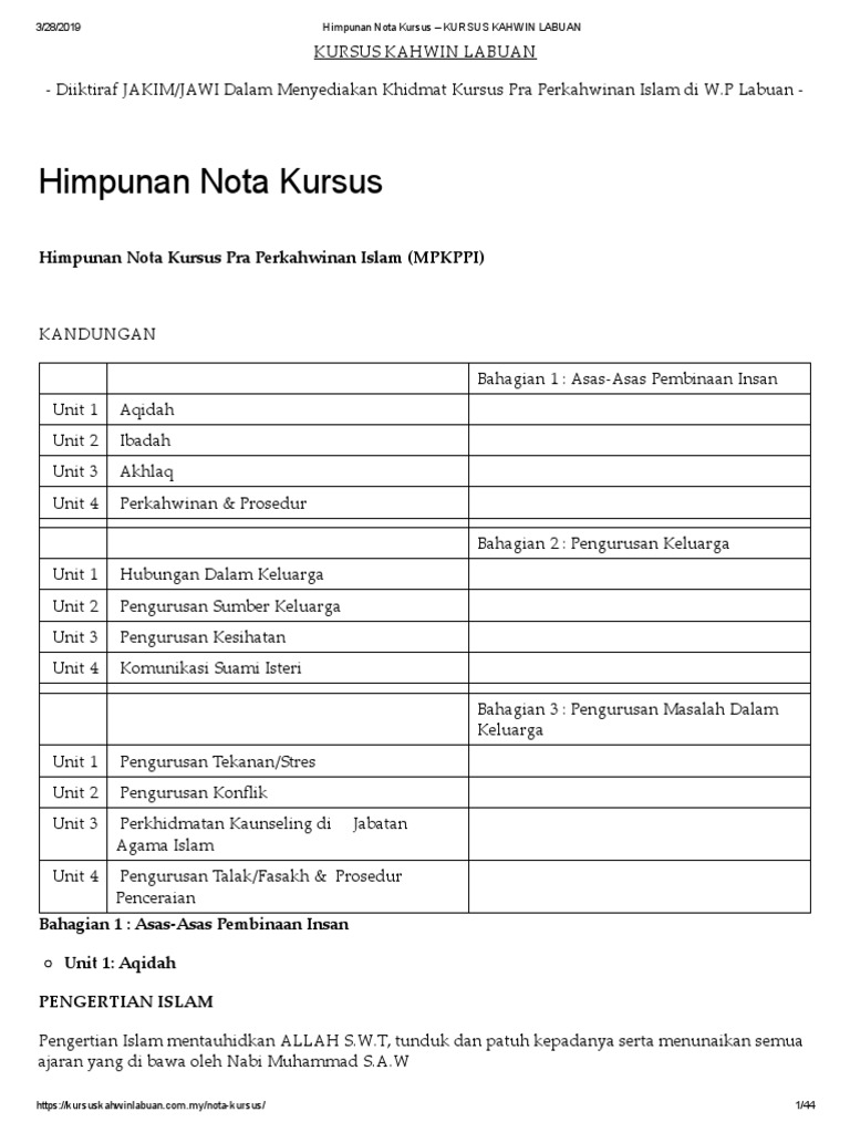 Kursus perkahwinan labuan sesi berikutnya adalah pda 18 july 2020. 5 6 pusat khidmat keluarga sosial dan komuniti pkksk 6 6 senarai nama penolong pendaftar nikah. Pemohon perempuan hendaklah mengisi dua salinan borang 1. Himpunan nota kursus pra perkahwinan islam mpkppi kandungan bahagian 1.