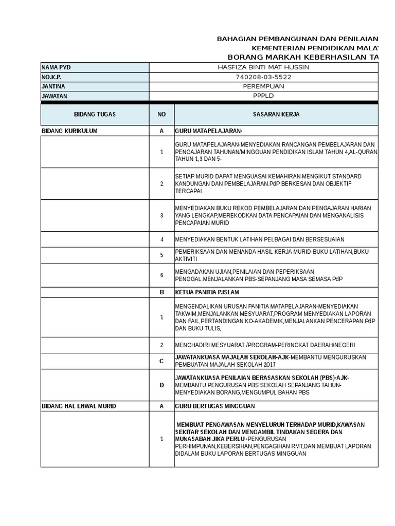 Contoh penulisan sasaran keberhasilan ini merujuk kepada tugas sebenar guru pensyarah pegawai fasilitator dan jurulatih di sekolah dan institusi masing. Panduan panduan untuk guru guru penolong kanan guru besar dan pengetua guru akademik biasa boleh juga diperoleh di pautan ini muat turun. Borang keberhasilan guru 2020 di malaysia jikalau dahulu kalangan guru di malaysia akan dinilai melalui sistem laporan nilaian prestasi tahunan lnpt. Mungkin ada yang masih keliru bagaimana cara isi borang keberhasilan guru.