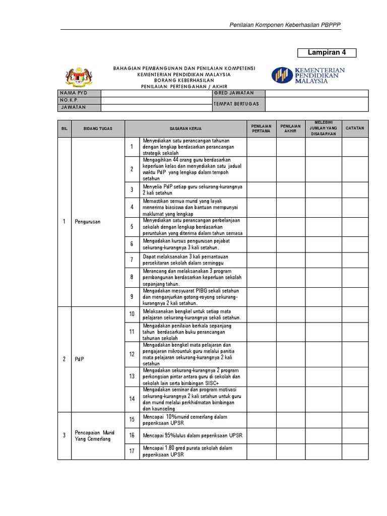 Oleh itu apa sahaja bidang yang anda letak di keberhasilan ini sila pastikan anda tau apa yang ingin diukur sewaktu berbincang dengan penilai.