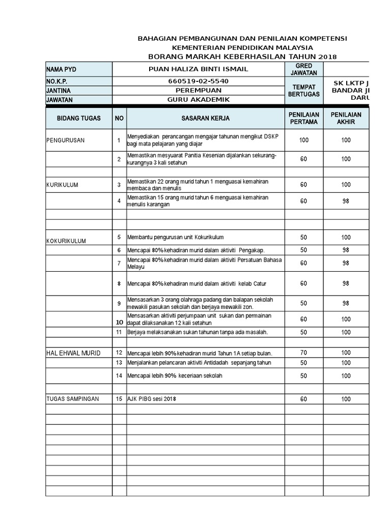 Taklimat operasi pelaksanaan pbppp tahun 2018. 05 02 2019 penilaian bersepadu pegawai perkhidmatan pendidikan borang keberhasilan tahun 2018 nama pyd norhaslina binti noordin no k p. Ada perubahan sikit dari tahun tahun lepas kerana mengikut pk hem baru yang inginkan 5 item dimasukkan dalam keberhasilan untuk pengurusan setiausaha sub unit hem. Kementerian pendidikan malaysia borang markah keberhasilan tahun 2016 nama pyd mohd faiz bin zorkarnain gred jawatan no k p.