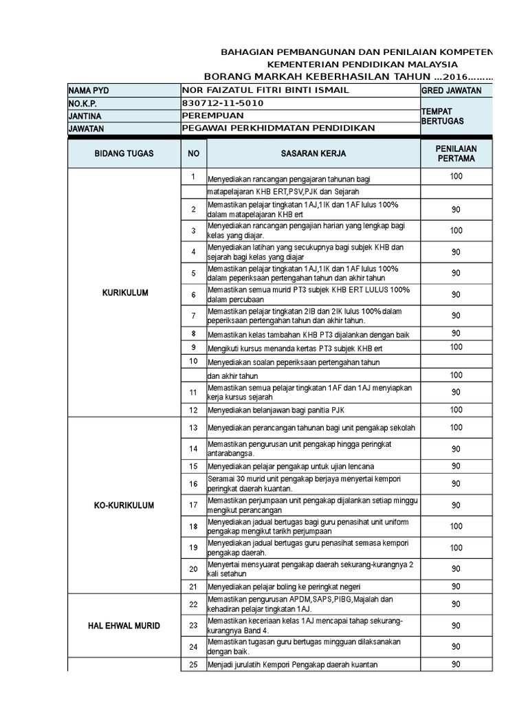 Borang keberhasilan xls. Klik untuk link surat arahan pelaksanaan dan bahan taklimat pbppp. Kad pengenalan nama jawatan gred 2 penilai no. Academia edu is a platform for academics to share research papers. Cari di dalam dokumen.