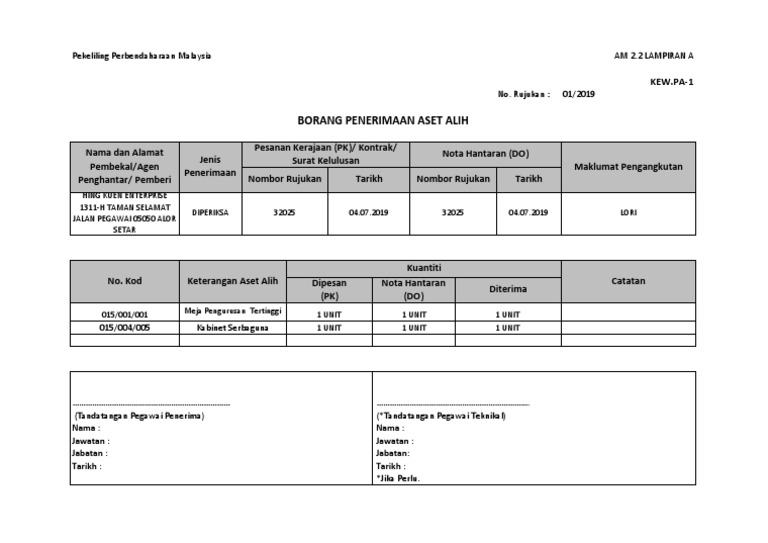 Pekeliling perbendaharaan malaysia am 2 4 lampiran a kew pa 9 no. Blog archive 2019 3 january 3 2017 7 july 1 february 4 january 2. 31 kew pa 31 sijil hapus kira aset alih sk jalan haji baki. Nombor siri pendaftaran.
