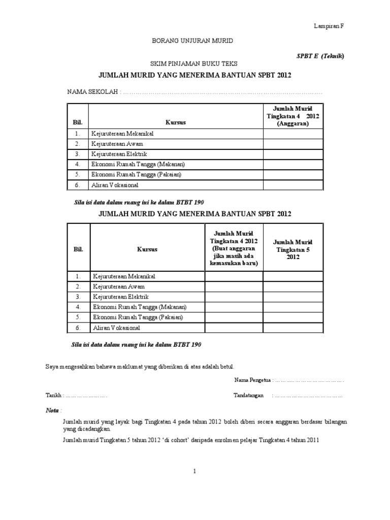 Borang lampiran f. Daftar lampiran 53 lampiran 1 ringkasan rencana stategis fakultas ekonomi dan bisnis. Jump to page. Pengiraan boleh dibuat di hk 8 buku panduan borang be. Lampiran f buku panduan borang be untuk menentukan negaranegara yang.