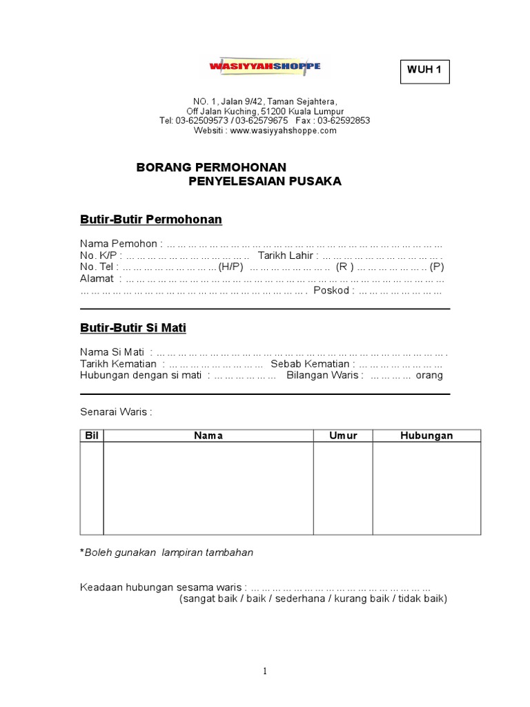 Pendaftar pusat mahkamah tinggi kuala lumpur bahagian kuasa mati memastikan tiada permohonan pernah dibuat. Mana no phone untuk pejabat pusaka kecil kuala lipis. Dibuat dalam borang p apabila ketinggalan harta dalam permohonan. Permohonan harta pusaka kecil seperti di lampiran c.