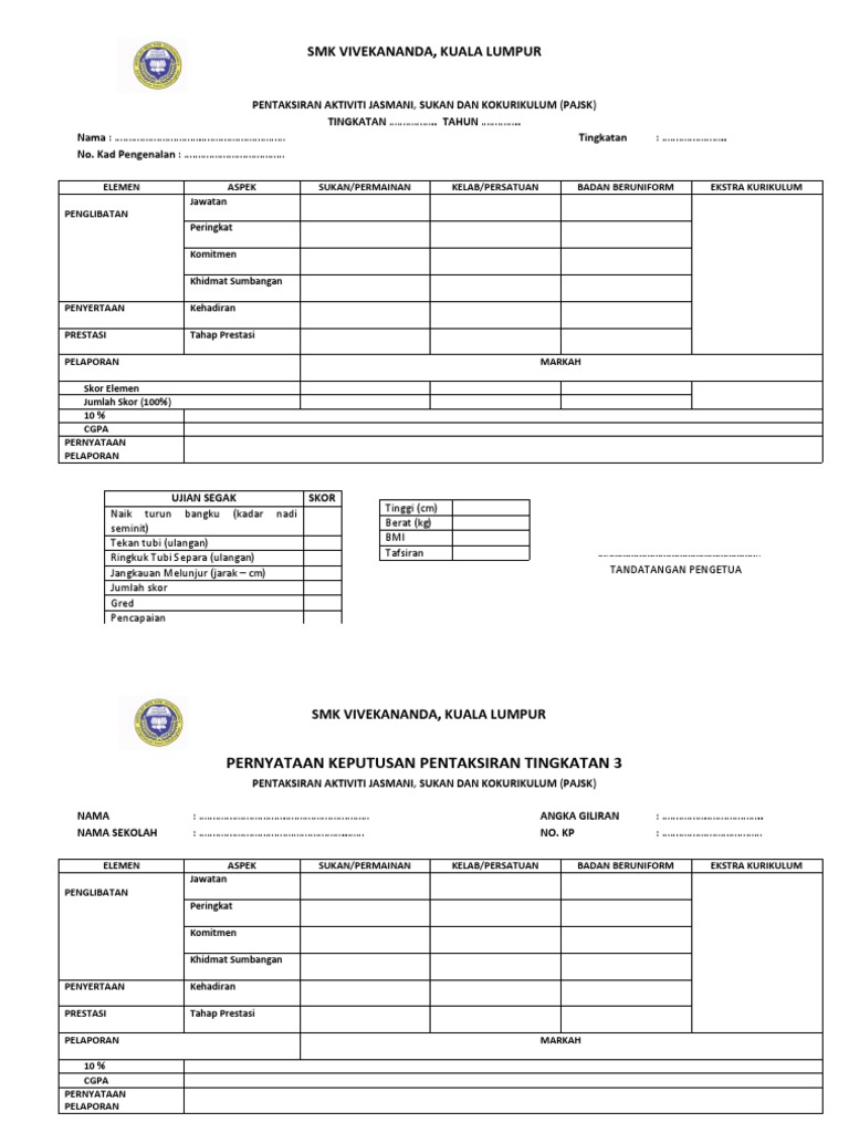 Borang pajsk 2019. Tingkatan 3 30 november. Home nilam perekodan nilam tahun 2020. Skor mengikut tahap umur ini ditetapkan dengan menggunakan indeks skor standard yang telah diperakui di peringkat kebangsaan. Beliau telah menugaskan guru kelas untuk mengedarkan borang borang kepada pelajar dan mengisi markah pelajar dalam sppbs.