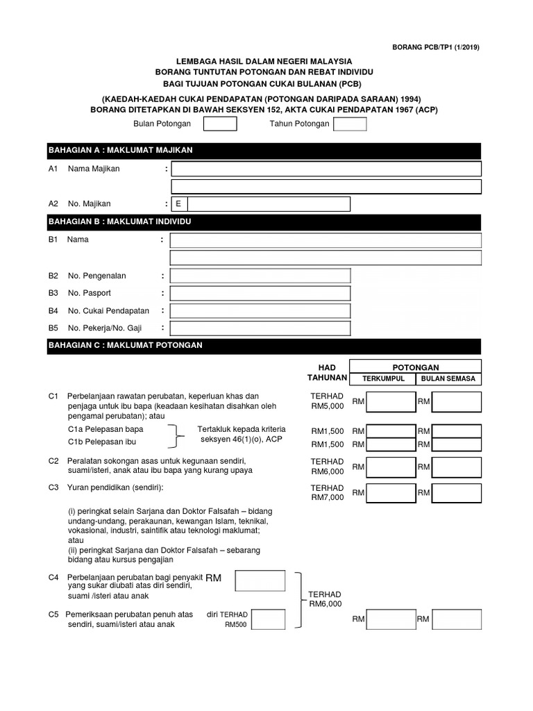 Borang pcb tp1 2019. Borang pcb tp1 1 2016 bahagian a. Maklumat majikan bahagian b. Maklumat majikan a1 nama majikan. Maklumat potongan nama lembaga hasil dalam negeri malaysia borang tuntutan potongan dan rebat individu nama majikan no.