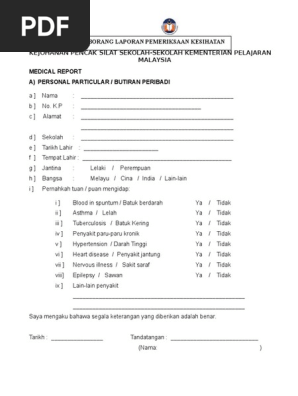 Borang Pemeriksaan Kesihatan Kementerian Pelajaran Malaysia
