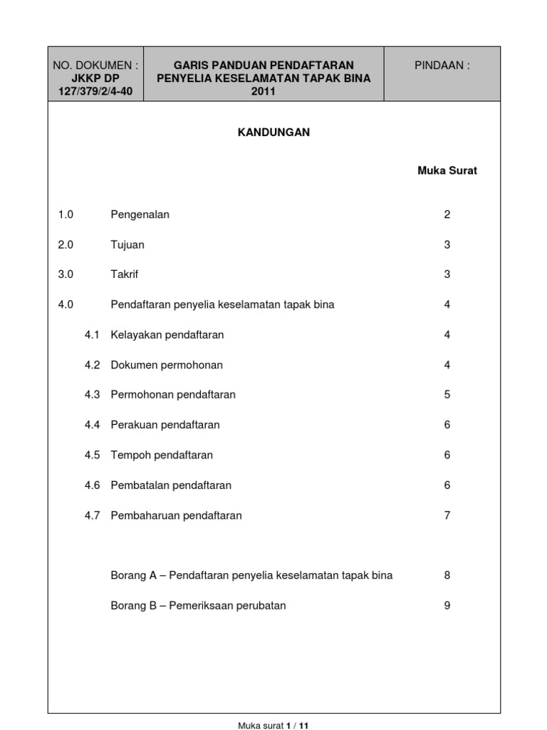 D surat pengesahan masih bekerja sebagai penyelia keselamatan tapak bina daripada pihak majikan terkini. Pengalaman sebagai penyelia tapak bina atau formen tapak bina dan telah menghadiri kursus penyelia keselamatan tapak bina di pusat pengajar yang. Surat pengesahan pemeriksaan kesihatan borang b. Olehkerana dokumen dokumen ini yang banyak dan mengandungi berbagai kandungan yang berbeza maka satu sistem fail yang baik perlu diwujudkan di pejabat tapak bina.