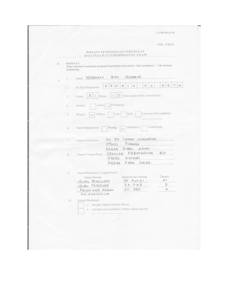 1 0 butir butir pemohon 1 1 nama huruf besar. Untuk tujuan pemeriksaan pemohon hendaklah membawa kaca mata jika pernah memakainya dan laporan. Biodata diisi sebelum berjumpa pengamal perubatan berdaftar. Untuk tujuan pemeriksaan pemohon hendaklah membawa mata jika pernah memakainya dan laporan kaca.