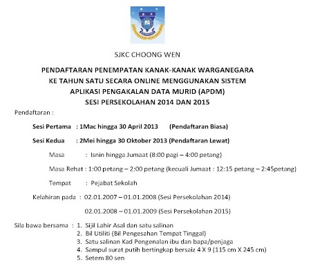 Tarikh dan panduan permohonan yang dinyatakan adalah rasmi seperti diumumkan oleh kementerian pendidikan malaysia kpm. Borang carian kelahiran jpn lm12 bagi kelahiran yang berlaku pada tahun 2002 dan ke bawah borang daftar kelahiran jpn lm01 diisi dengan lengkap. Bagi yang daftar lewat kelahiran dan pendaftaran secara online tidak dapat dilakukan minta ibu bapa daftar secara manual di ppd selepas 15 disember 2020 dengan mengisi borang asbs bagi permohonan tahun 1 2021 untuk murid tanpa dokumen mohon mendaftar di ppd melalui borang mwtd selepas 15 disember 2020. Bagi yang daftar lewat kelahiran dan pendaftaran secara online tidak dapat dilakukan minta ibu bapa daftar secara manual di ppd selepas 15 disember 2020 dengan mengisi borang asbs.