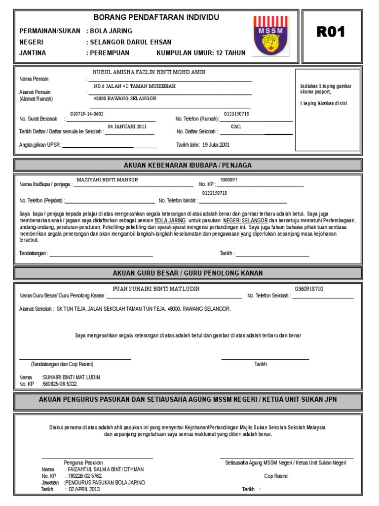 Borang r01 borang pendaftaran pemain panduan mengisi borang r01 dan mo1. Borang m01 m02 have a graphic from the other. Saya juga mengakui bahawa penama di atas telah mendapat kebenaran ibubapa penjaga melalui borang kebenaran ibubapa penjaga mengikut surat pekeliling ikhtisas bil. Alamat pemain.