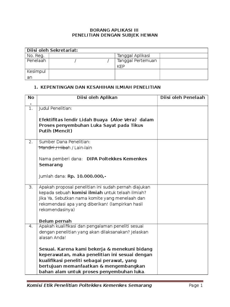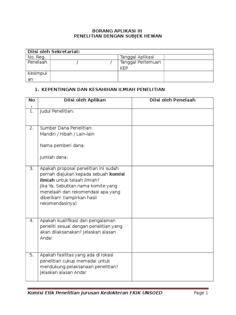 0447 atau 0448 atau melalui alamat e mail simlitabmas dikti go id. Download borang komisi etik. Visi misi dan tujuan. Melakukan kajian rencana penelitian yang menggunakan hewan coba.