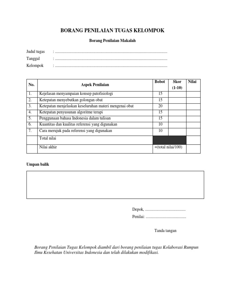 Pengajar tetap program sarjana program studi indonesia fakultas ilmu pengetahuan budaya universitas indonesia 1. Borang penilaian hasil studi kerja mahasiswa fib ui. Penilaian terhadap kemampuan peserta didik idealnya menggunakan pengukuran inteligensia atau potensi yang dimilikinya. Tanggal 4 desember 2018.