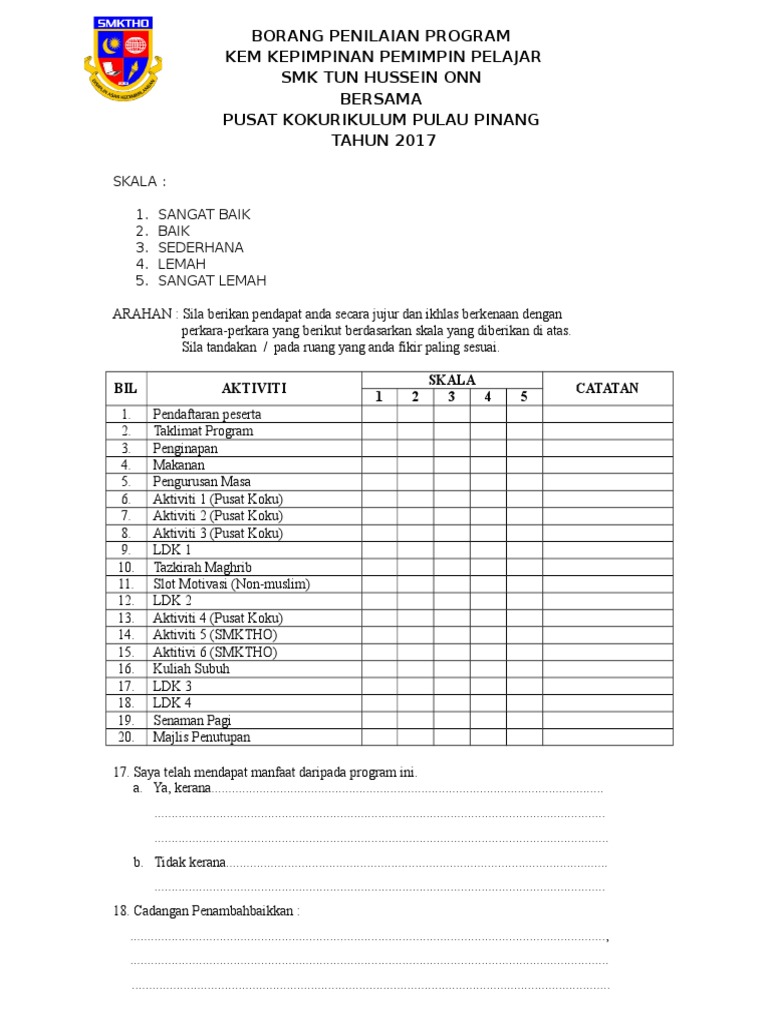 Borang penilaian peserta program. Beb 4068 1 0 nama program. Borang ini adalah sulit anda tidak perlu mencatat nama atau menandatangani borang ini. Borang penilaian laporan akhir 21. Program kursus dan pelatihan harus memiliki soal teori dan praktek 8 2.