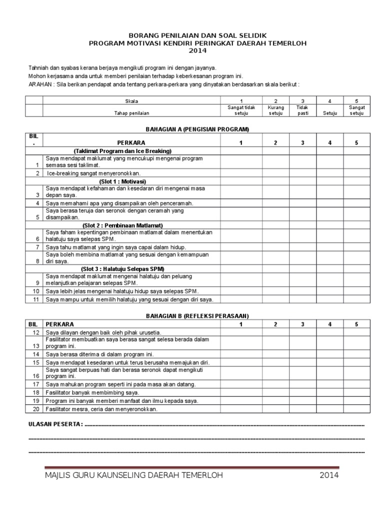 Borang penilaian program motivasi. Borang penilaian program motivasi ug. Sila tandakan di dalam ruangan yang. 0 0 mendukung 0 0 menolak. Program kursus dan pelatihan sebaiknya memiliki komponen pedoman penilaian akhir pembelajaran 8 1 3.