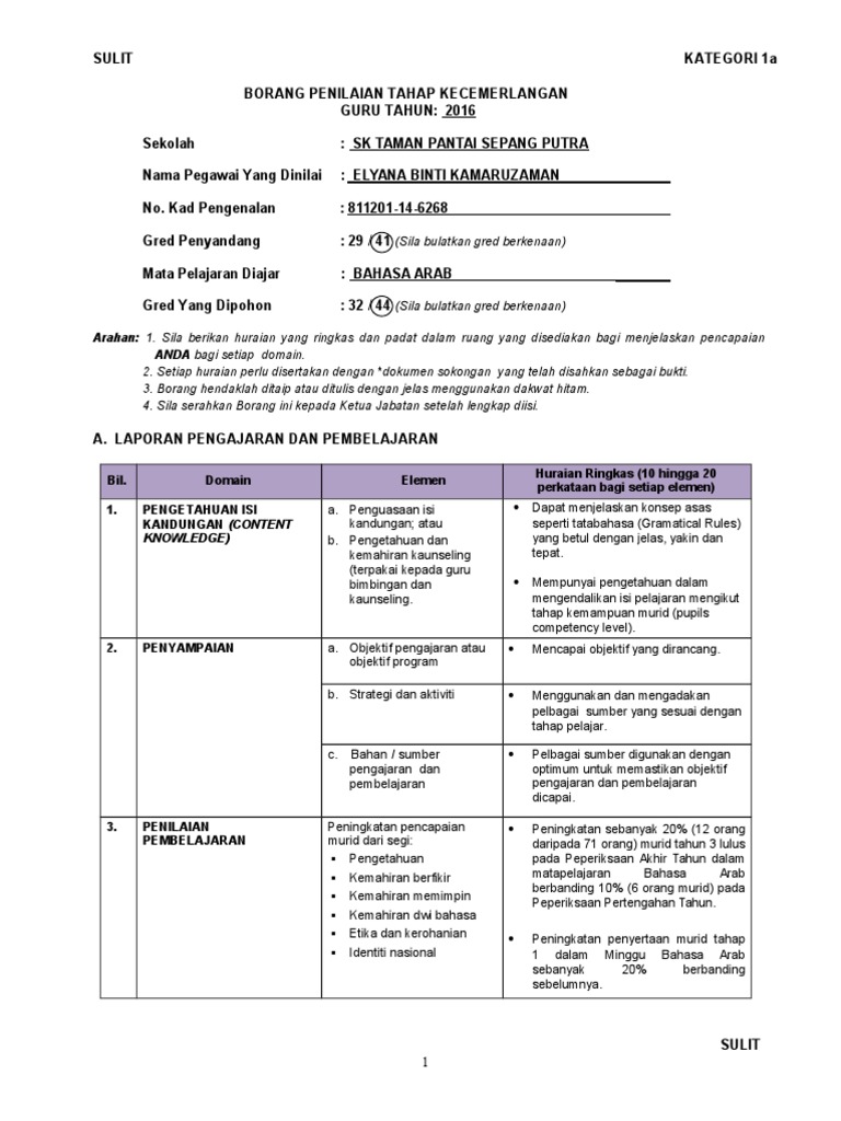 Sk merang nama pegawai yang dinilai. Borang penilaian tahap kecemerlangan guru tahun. Pendidikan islam gred yang dipohon. Sulit kategori 1a borang penilaian tahap kecemerlangan guru tahun.