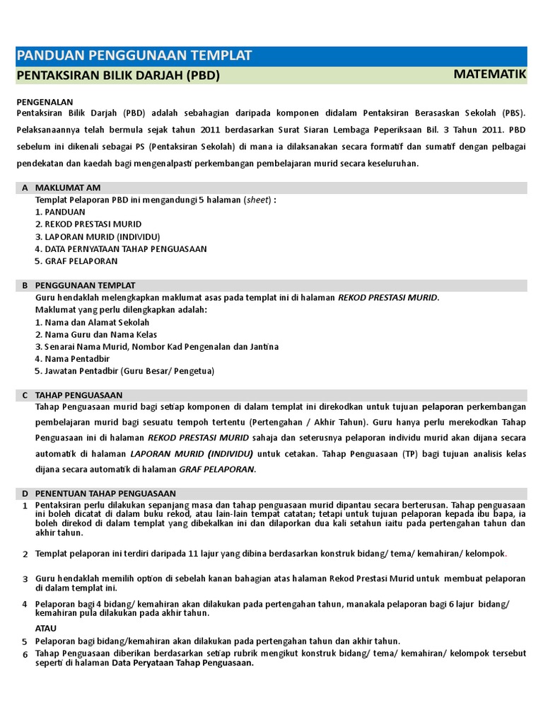 Borang pentaksiran bilik darjah matematik tahun 2. Pbd pentaksiran bilik darjah ialah sebahagian daripada komponen dalam pentaksiran berasaskan sekolah pbs. Oleh yang demikian guru guru hendaklah memastikan templat yang anda gunakan adalah versi terbaru iaitu versi 3 0. Tiada lagi peperiksaan pertengahan tahun dan peperiksaan akhir tahun bagi murid tahap 1 bermula 2019 kerana akan menggunakan pentaksiran bilik darjah sepenuhnya. Bermula 2019 tahap 1 dari tahun 1 hingga tahun 3 menggunakan pelaporan bilik darjah berdasarkan kurikulum standard sekolah rendah kssr semakan bermula 2017.