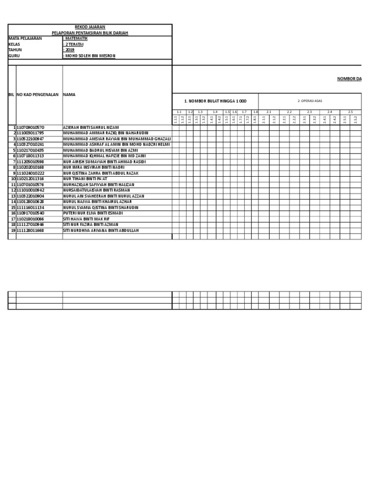 Borang Pentaksiran Bilik Darjah Matematik Tahun 2