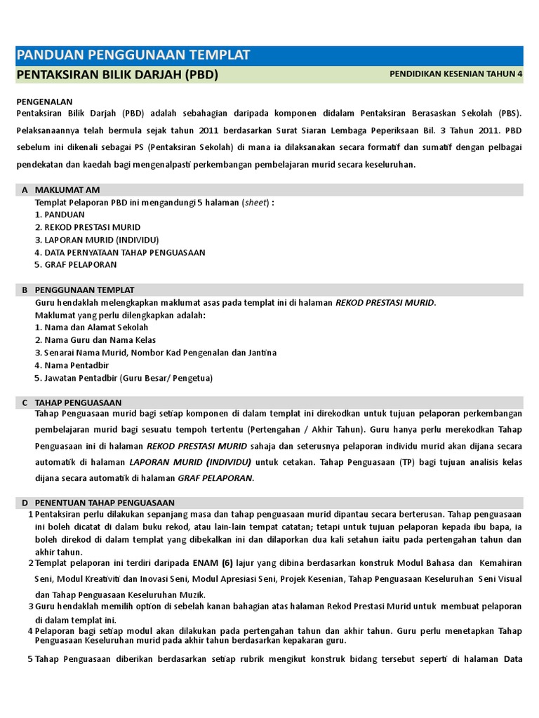 Templat pelaporan pbd tahun 4 adalah sebahagian daripada komponen di dalam pentaksiran berasaskan sekolah pbs tahun 4 pelaksanaannya telah bermula sejak tahun 2011 berdasarkan surat siaran lembaga peperiksaan bil. Pentaksiran bilik darjah pbd merupakan pentaksiran berterusan dalam sesi pengajaran dan pembelajaran bagi mendapat maklumat kemajuan perkemnbangan dan kebolehan murid. Templat pelaporan pbd tahun 4 sk pentaksiran bilik darjah templat pelaporan pbd tahun 4 sk 2020a xls. Pbd berlaku secara formatif dan sumatif.