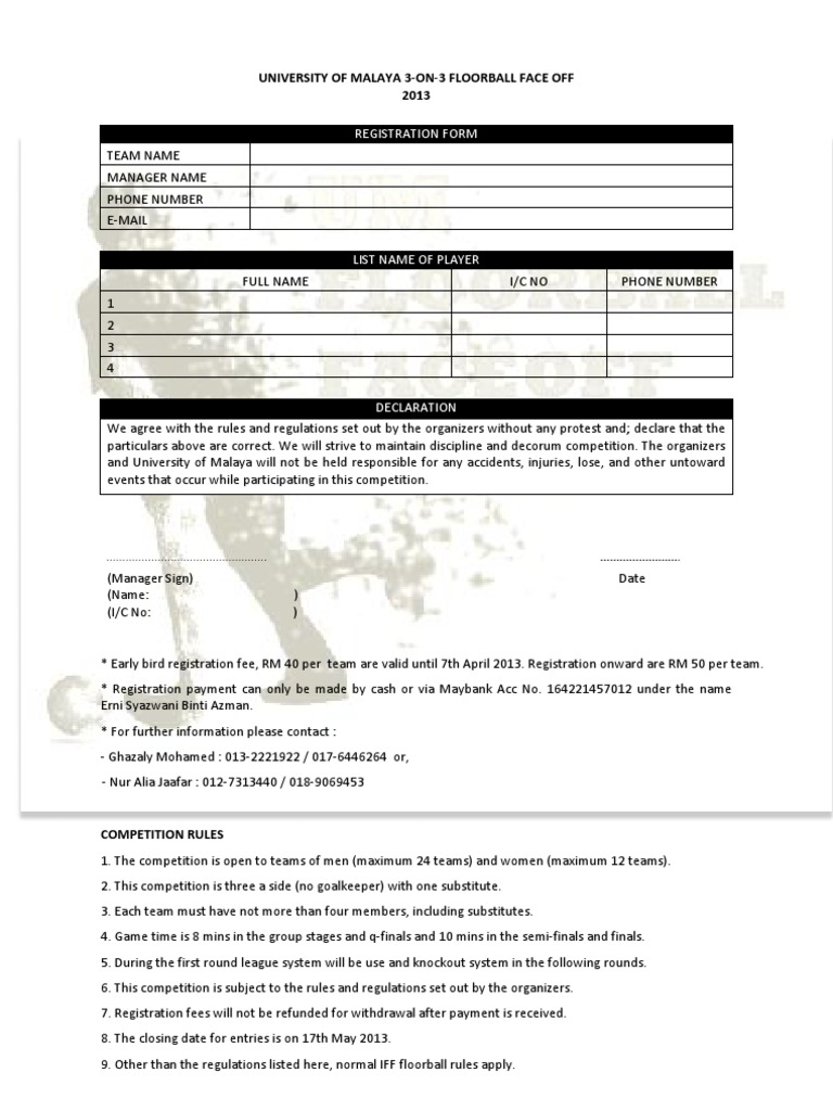 Borang penyertaan in english. You can use them for any sports from basketball and football to golf and tennis registrations. In the event of inconsistency between the versions the english version shall prevail. Borang penyertaan pertandingan pembaca bahasa melayu tahun 3bil. Results for penyertaan translation from malay to english.