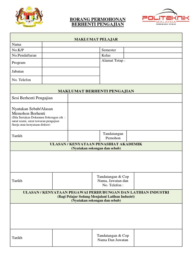 Borang permohonan berhenti kerja. Sungguhpun mencapai keputusan terbaik didalan jurusan ia belum pasti menja. Surat rasmi notis berhenti kerja resignation letter perlu dihantar ke pihak majikan dengan alasan berhenti samada mendapat tawaran pekerjaan yang baru melanjutkan pelajaran dan sebagainya. Berikut adalah diantara contoh surat rasmi berhenti kerja yang terbaik mudah dan ringkas contoh 1. Menara perkeso 281 jalan ampang 50538 kuala lumpur.