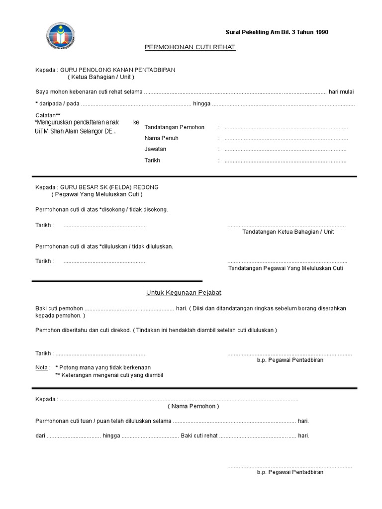 Borang Permohonan Cuti Rehat Uitm
