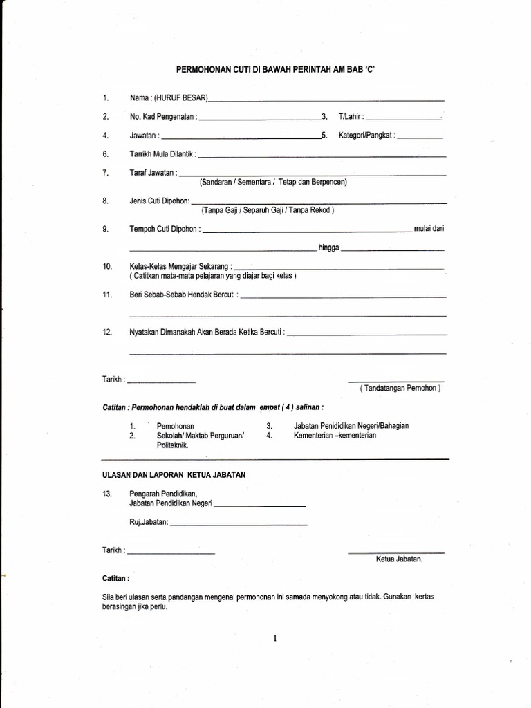 Borang 3c borang permohonan cuti cuti tanpa gaji cuti separuh gajucuti tanpa rekod di bawah perintah am bab c.