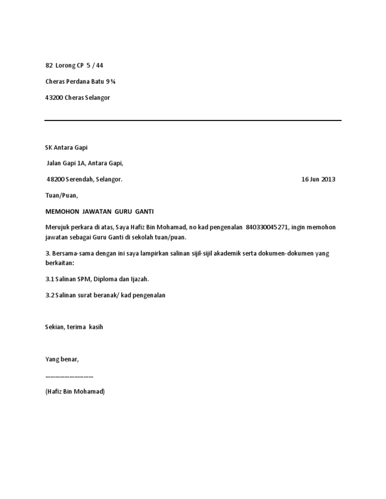 Berikut adalah cara untuk membuat permohonan guru ganti 2020 sekolah rendah dan sekolah menengah. Sihat tubuh badan dan tidak cacat pancaindera. Guru ganti adalah guru tidak terlatih yang ditempatkan di suatu sekolah bagi mengisi kekosongan sementara guru tetap disebabkan cuti bersalin cuti sakit cuti mengerjakan haji berkursus atau lain lain hal yang dibenarkan khidmat guru ganti akan tamat apabila guru yang diganti telah tamat tempoh bercuti atau berkursus dan kembali bertugas di sekolah. Hanya pejabat pendidikan daerah ppd layak melantik guru ganti yang diperlukan bagi sesebuah sekolah.