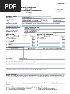 Borang Permohonan Guru Ganti Sekolah Rendah Dan Sekolah Menengah Sarawak
