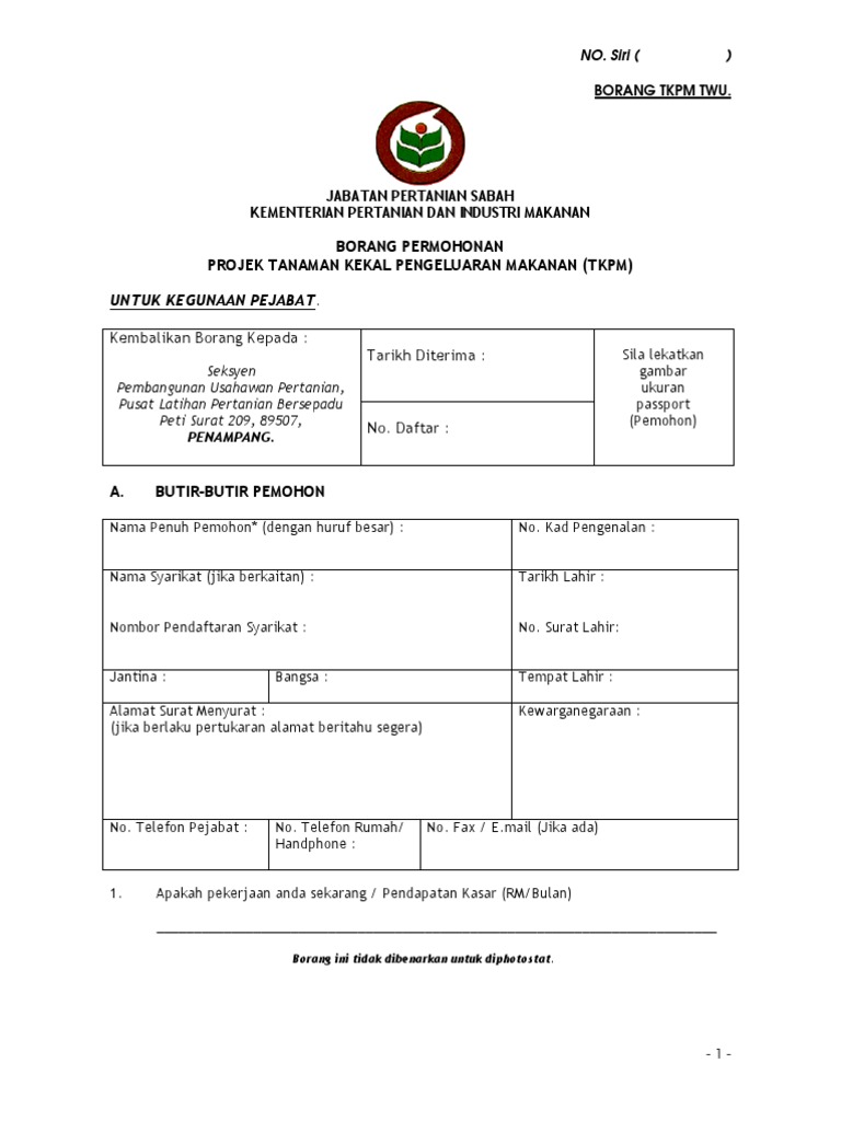 Setelah siap isi borang permohonan hantar melalui emel di. Email protected atau hantar ke pejabat jabatan pertanian yang terdekat dengan anda. Setelah borang lengkap diterima pegawai jabatan pertanian akan melawat kawasan projek untuk menentukan kategori projek kesesuaian tapak dan jenis bantuan insentif yang diperlukan. Calon calon yang berkelayakan adalah dipelawa untuk mengisi kekosongan jawatan tersebut.